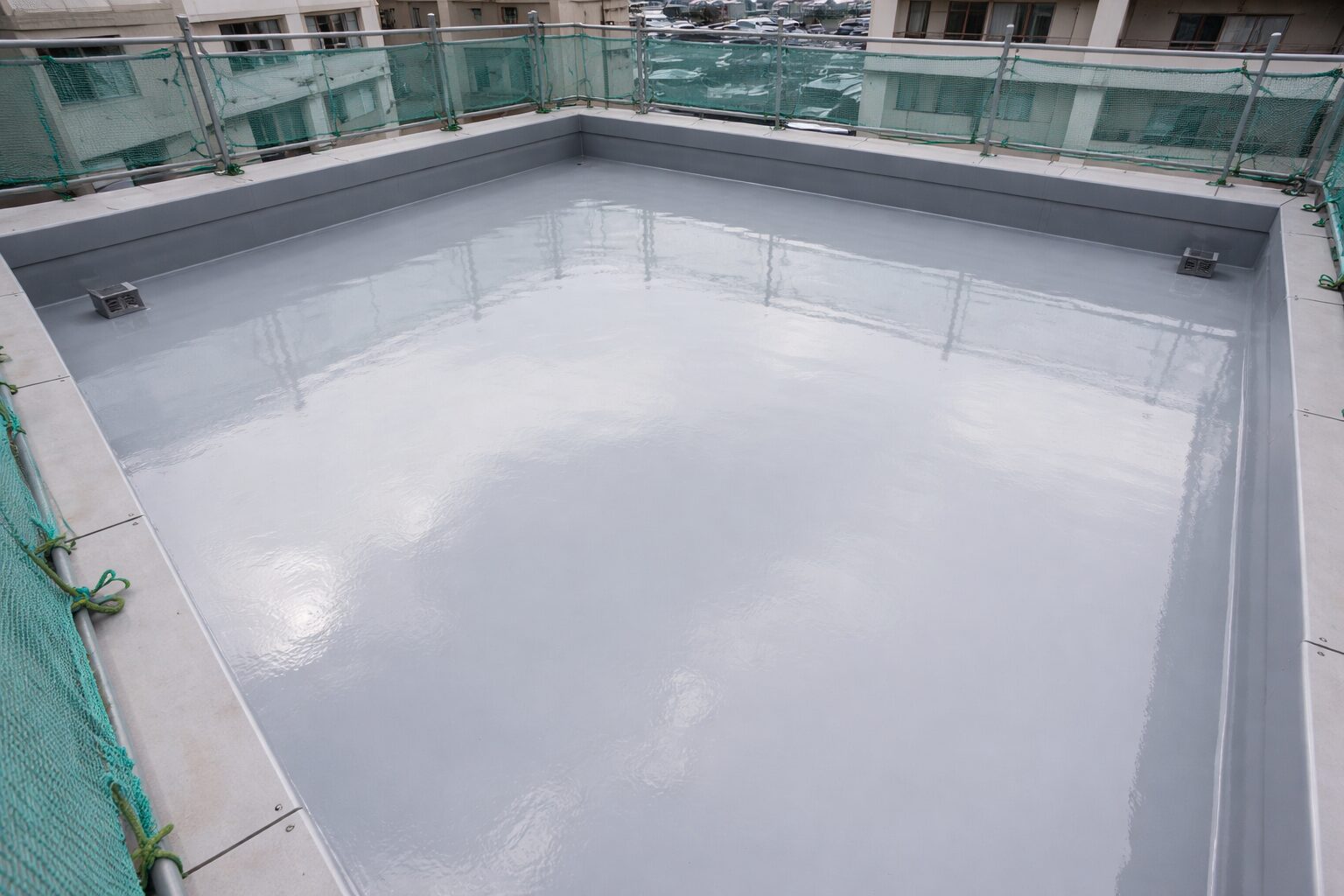 FRP防水は硬化後の強度が高く、歩行による摩耗に強い仕様に向きます。目安寿命は10〜15年程度で、防水性能と強度のバランスが良好です。施工時の温度管理が仕上がりに影響するため、寒冷期や湿気の高い時期には養生を含めた工程が重要になります。仕上げのトップコート選定で耐候性を高められます。
